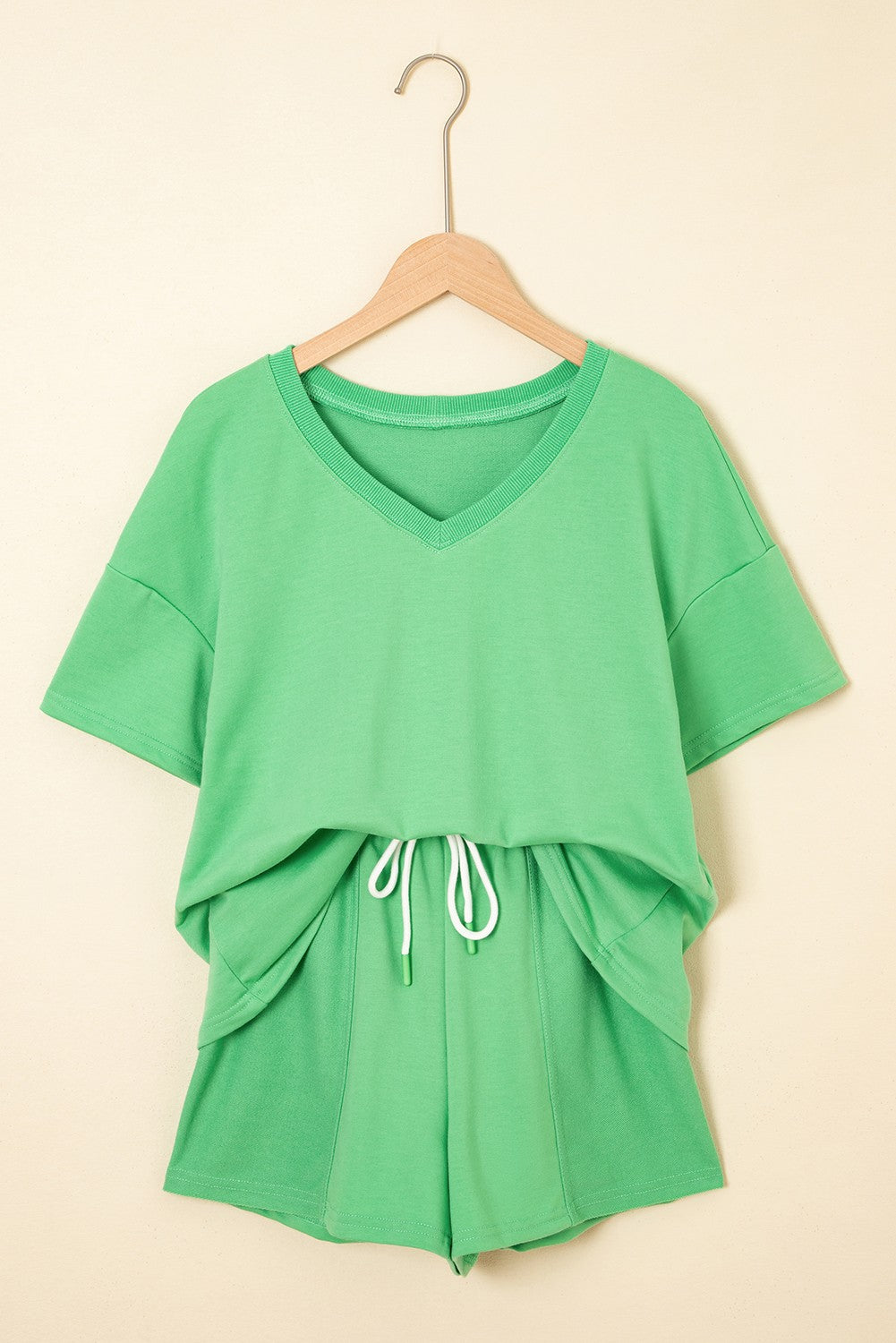 Brynn Linen V-Neck Pleated Top with Ruffle Sleeves in Pear