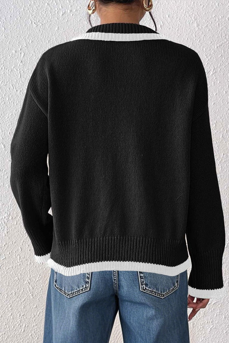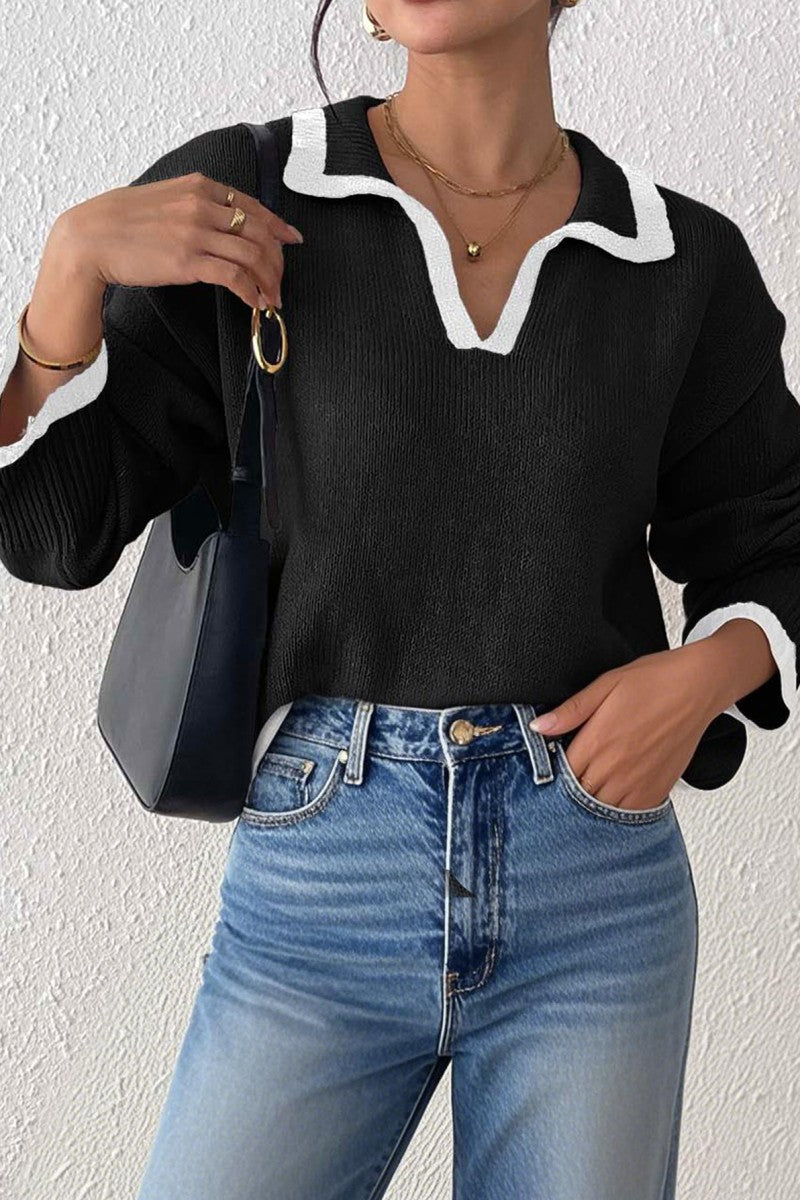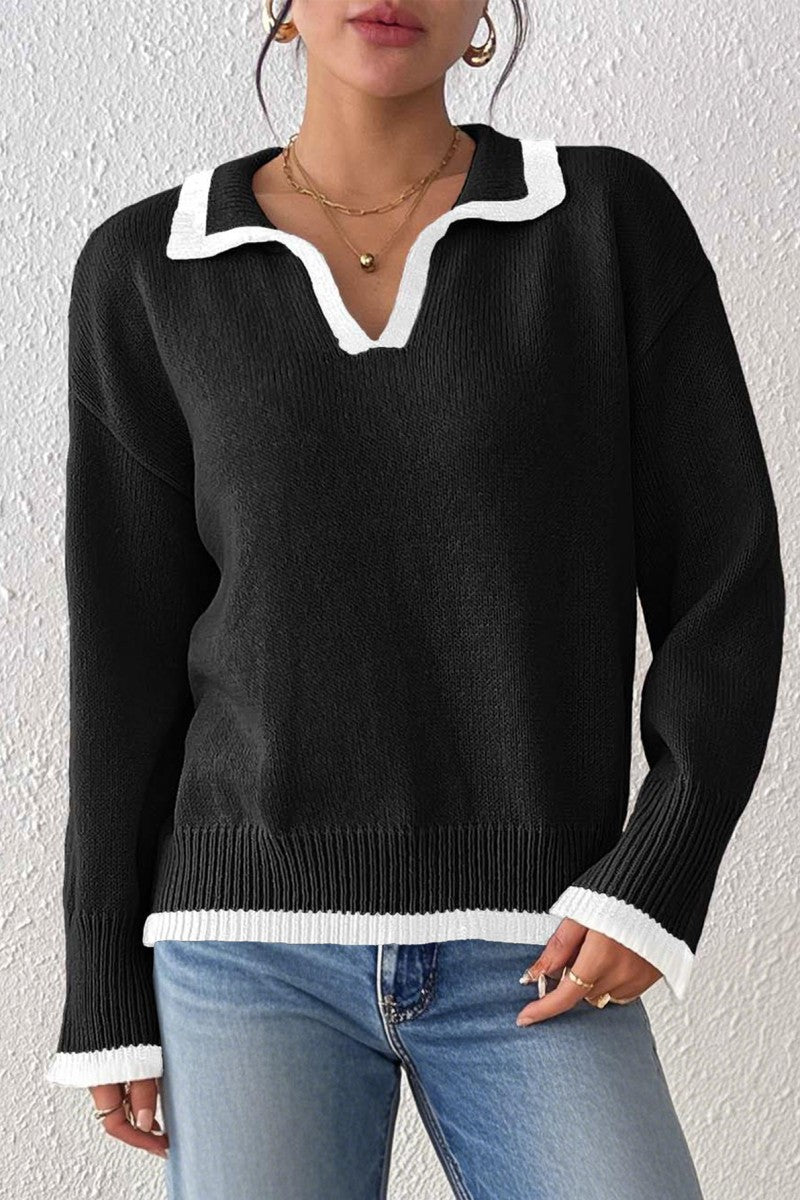 This Contrast Trim V-Neck Pullover Sweater combines style and comfort with its soft 100% polyester fabric. Lightweight yet warm at 380 grams, it’s perfect for layering or wearing on its...