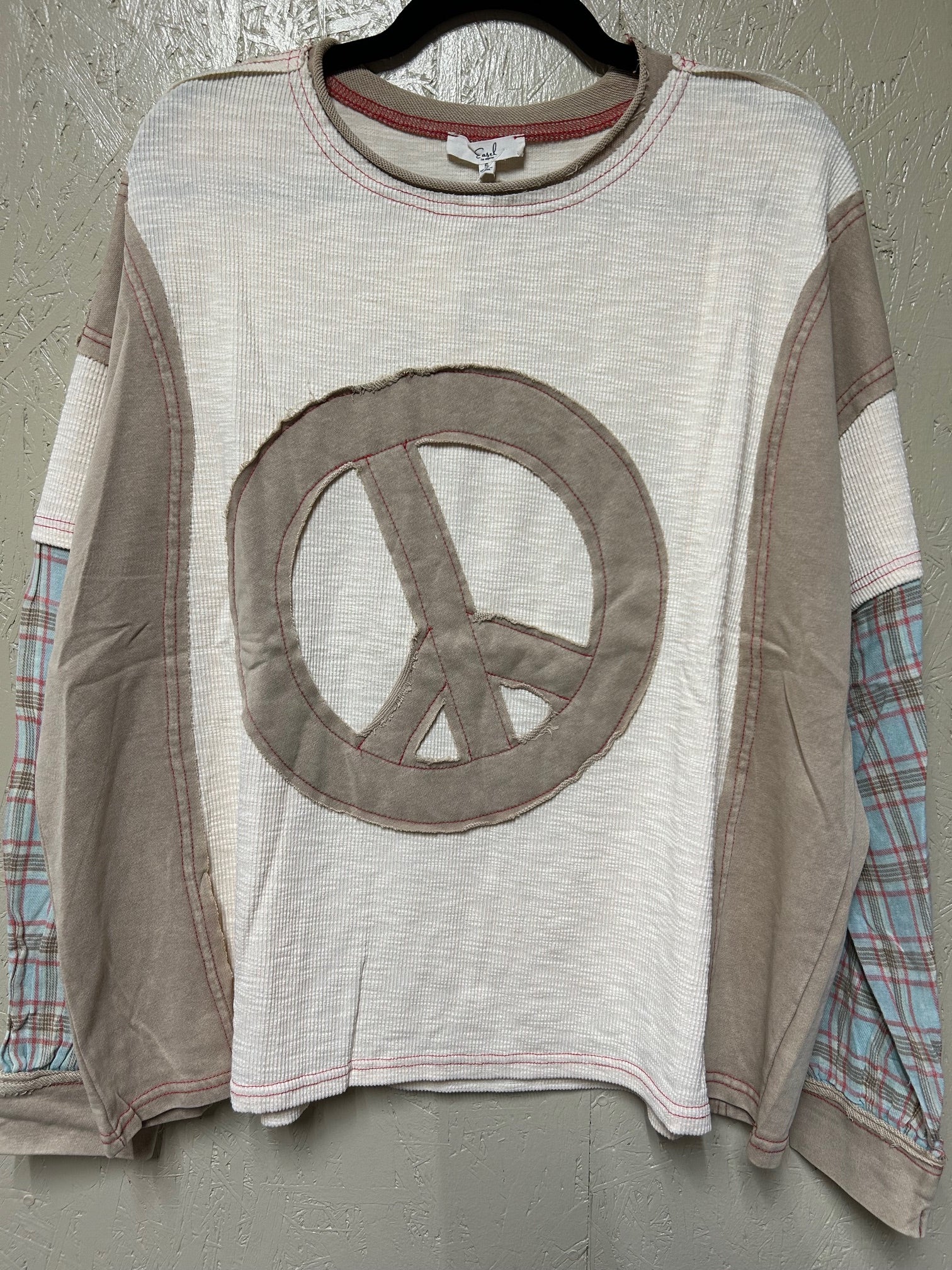 Stay cozy and stylish with this layered peace patch thermal knit pullover. Crafted from a soft blend of 94% polyester and 6% spandex, it offers a relaxed, loose fit for...
