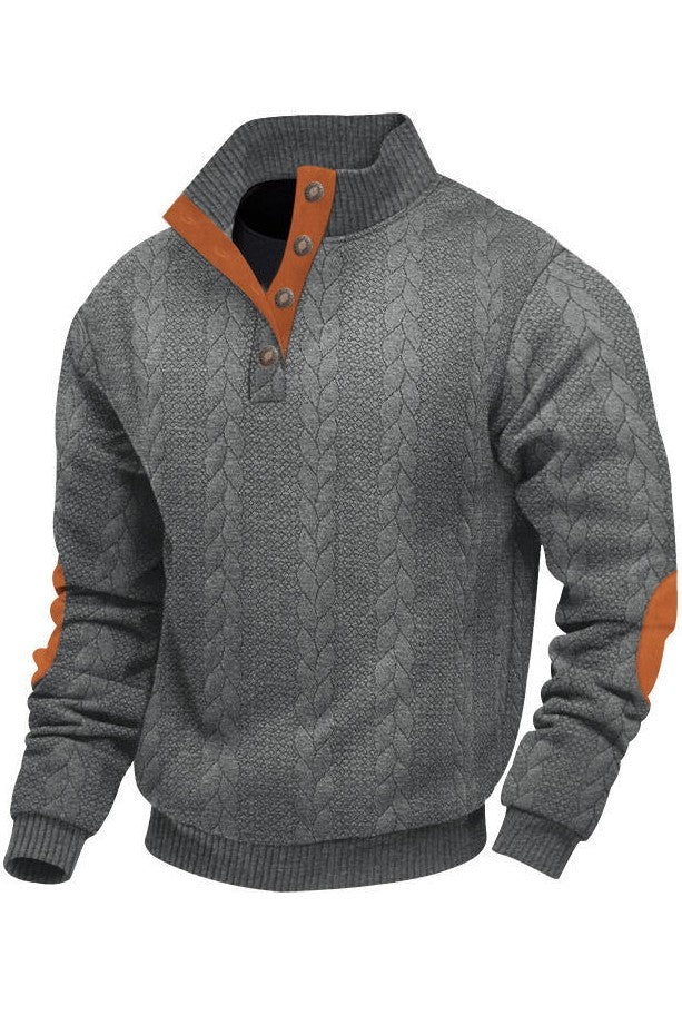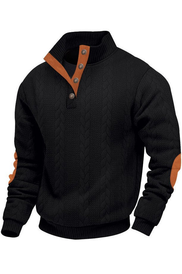 Elevate your casual wardrobe with the Black Patchwork Sweatshirt S2306. Its buttoned stand-collar offers adjustable neck coverage and a sharp, structured look. The jacquard weave adds texture and a premium...