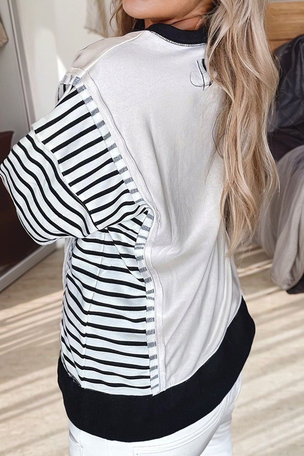 Embrace effortless style this season with our patchwork sweatshirt—a cozy essential that combines fashion-forward design with everyday comfort. Featuring solid panels accented by eye-catching patchwork detailing at the sleeves, this...