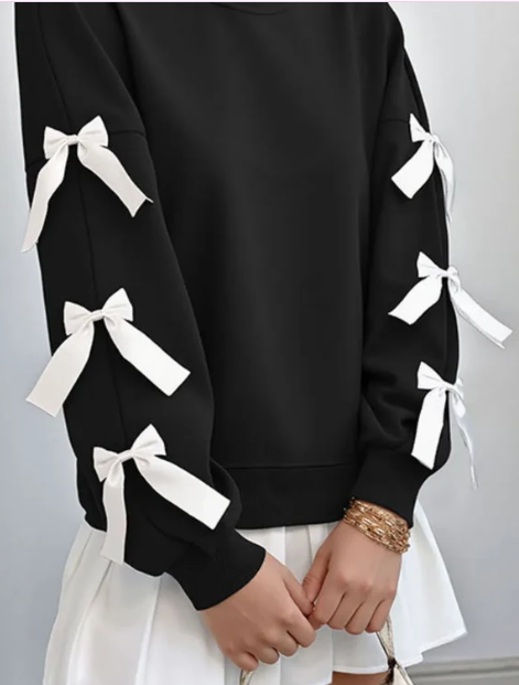 Experience comfort with a touch of elegance in the Black Satin Bow Sweatshirt S9320. Crafted from 100% polyester, this lightweight 390 g sweatshirt offers softness and durability for all-day wear....