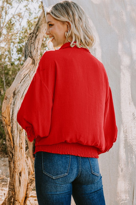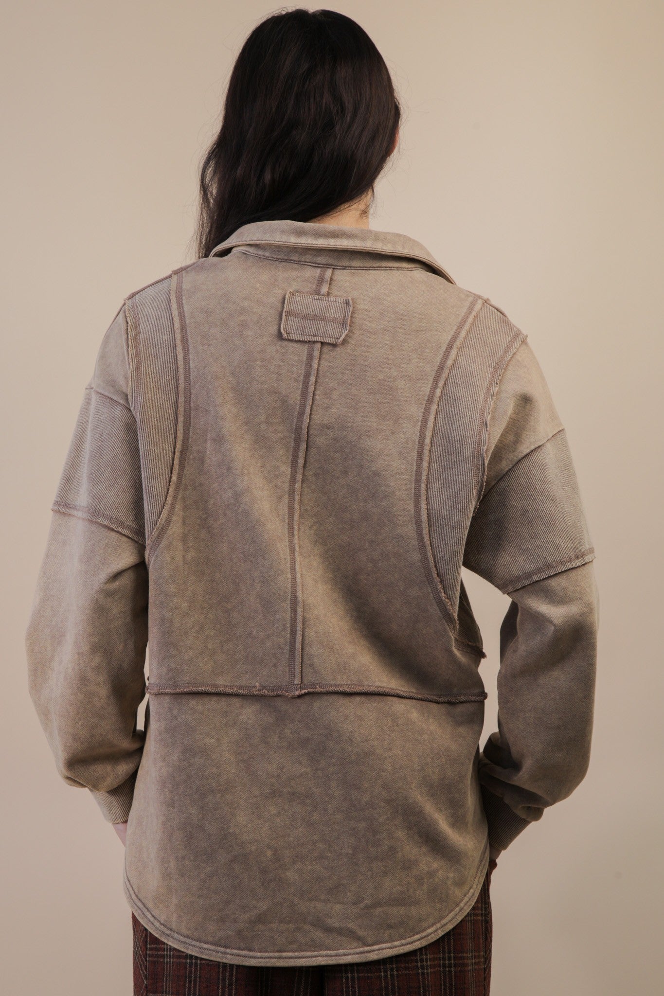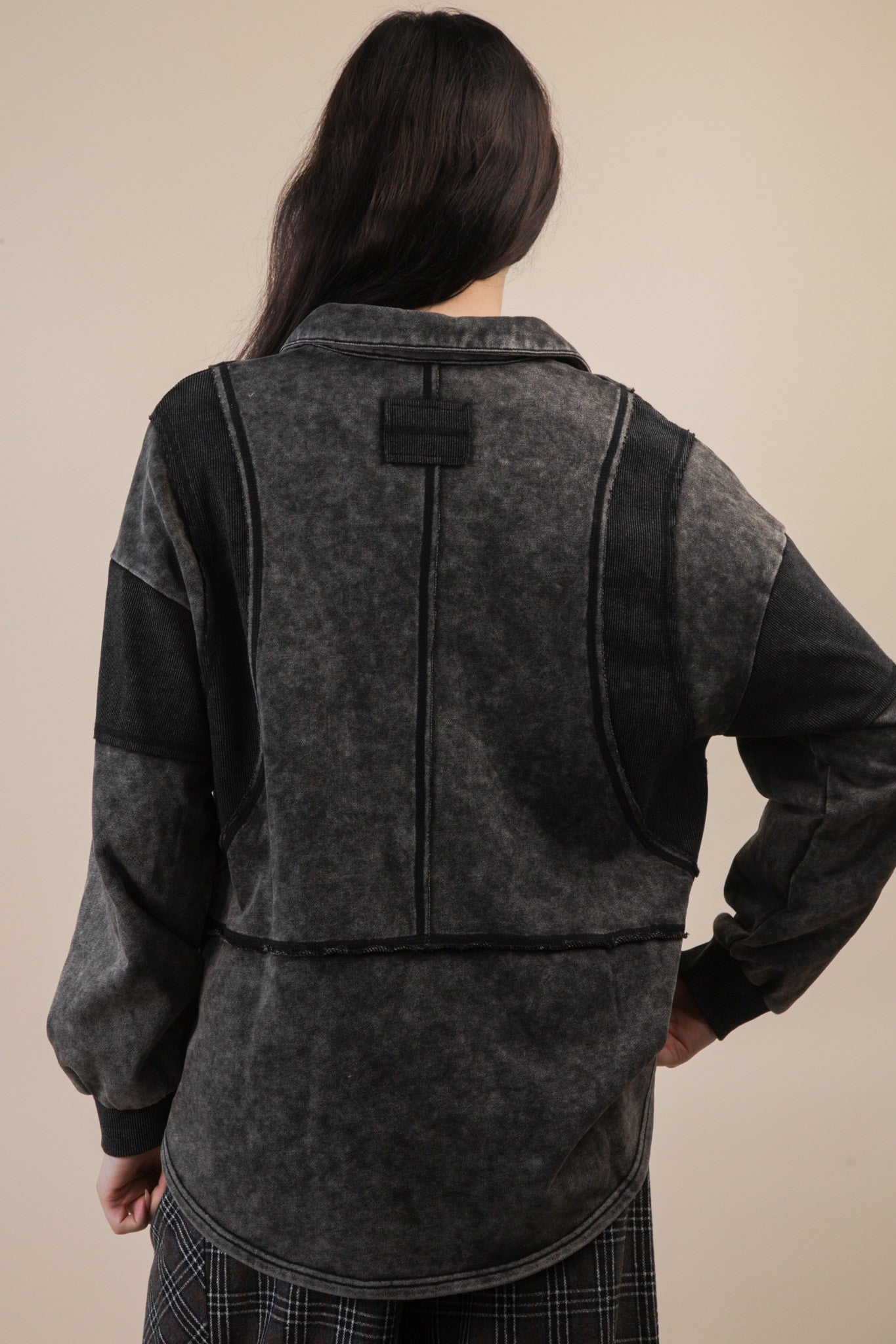 This Mineral Washed Oversized French Terry Knit Top offers effortless comfort with a stylish edge. Featuring a relaxed drop shoulder design, a classic collar, and long sleeves, it combines casual...