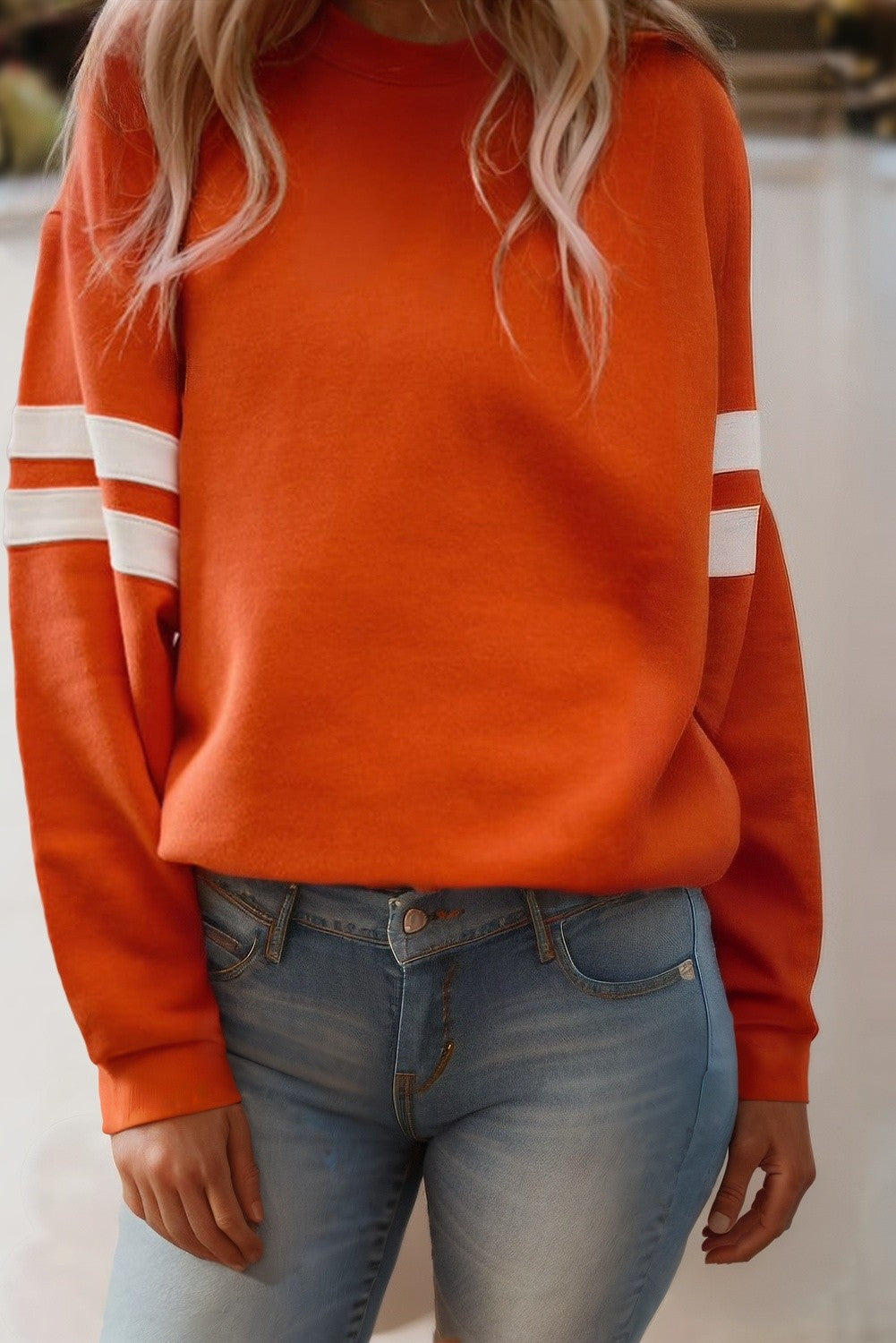 Stay cozy and stylish in this drop-shoulder sweatshirt featuring sporty varsity stripes for a fresh, trendy look. Its oversized fit ensures ultimate comfort and versatility, perfect for layering or lounging....