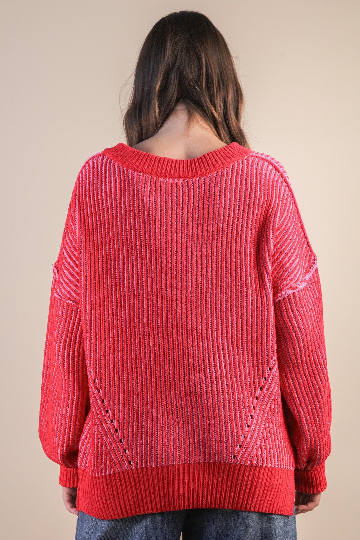 Experience effortless style and comfort with the Oversized Knit Sweater. This casual top features a unique hole detail and a flattering V-neck, creating an eye-catching look. Its long sleeves and...