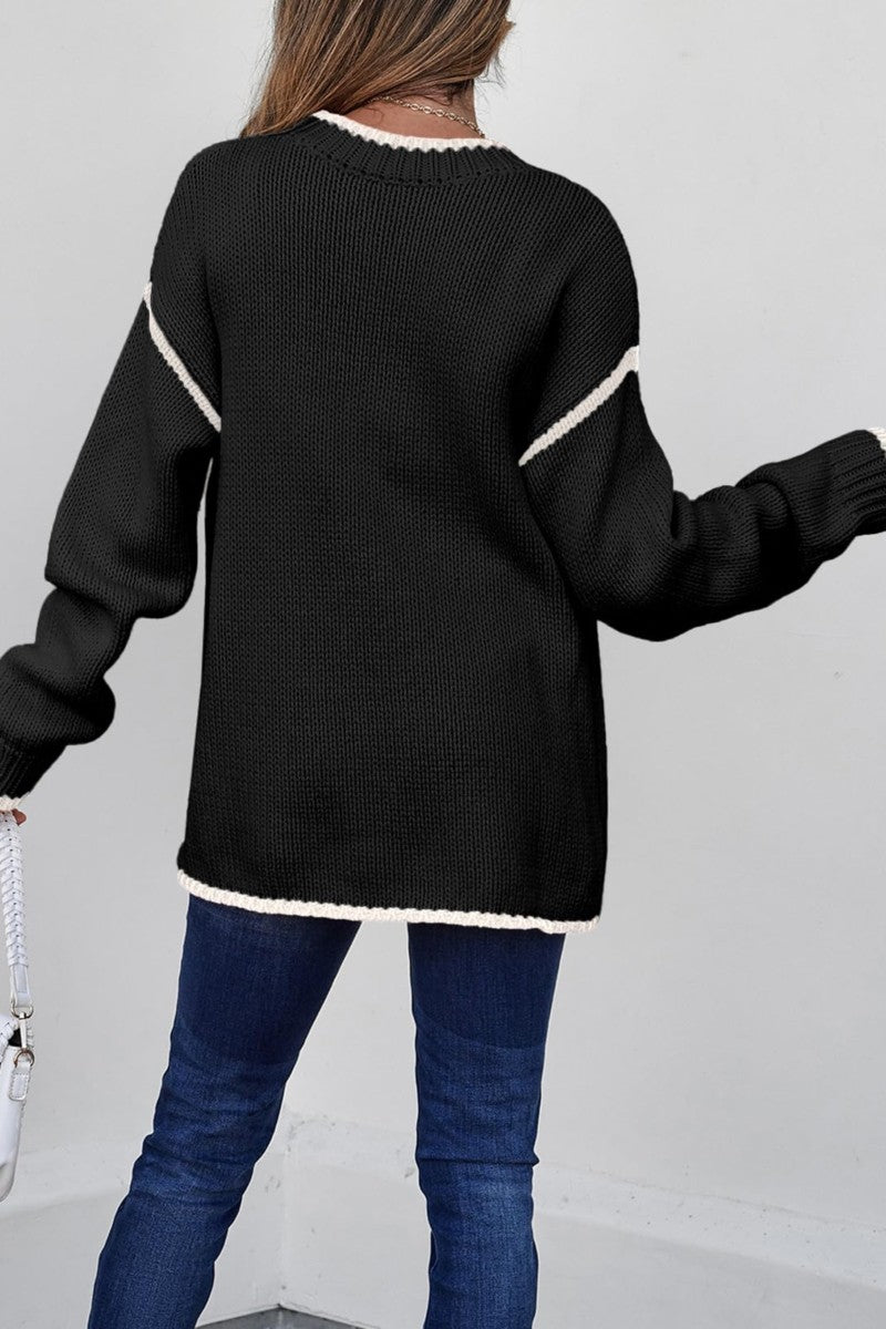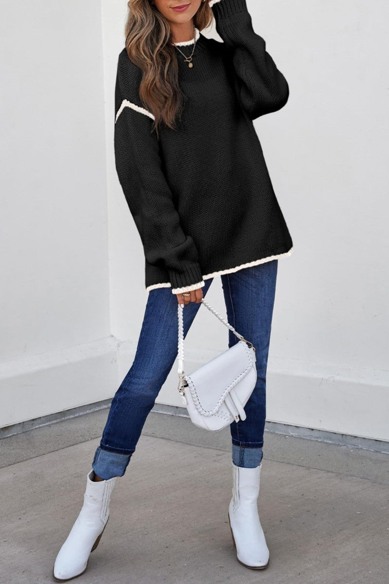 Experience effortless style and comfort with this Color Contrast Accent Drop Shoulder Knit Sweater. Crafted from a blend of polyester, viscose, and elastane, it offers a soft touch with just...