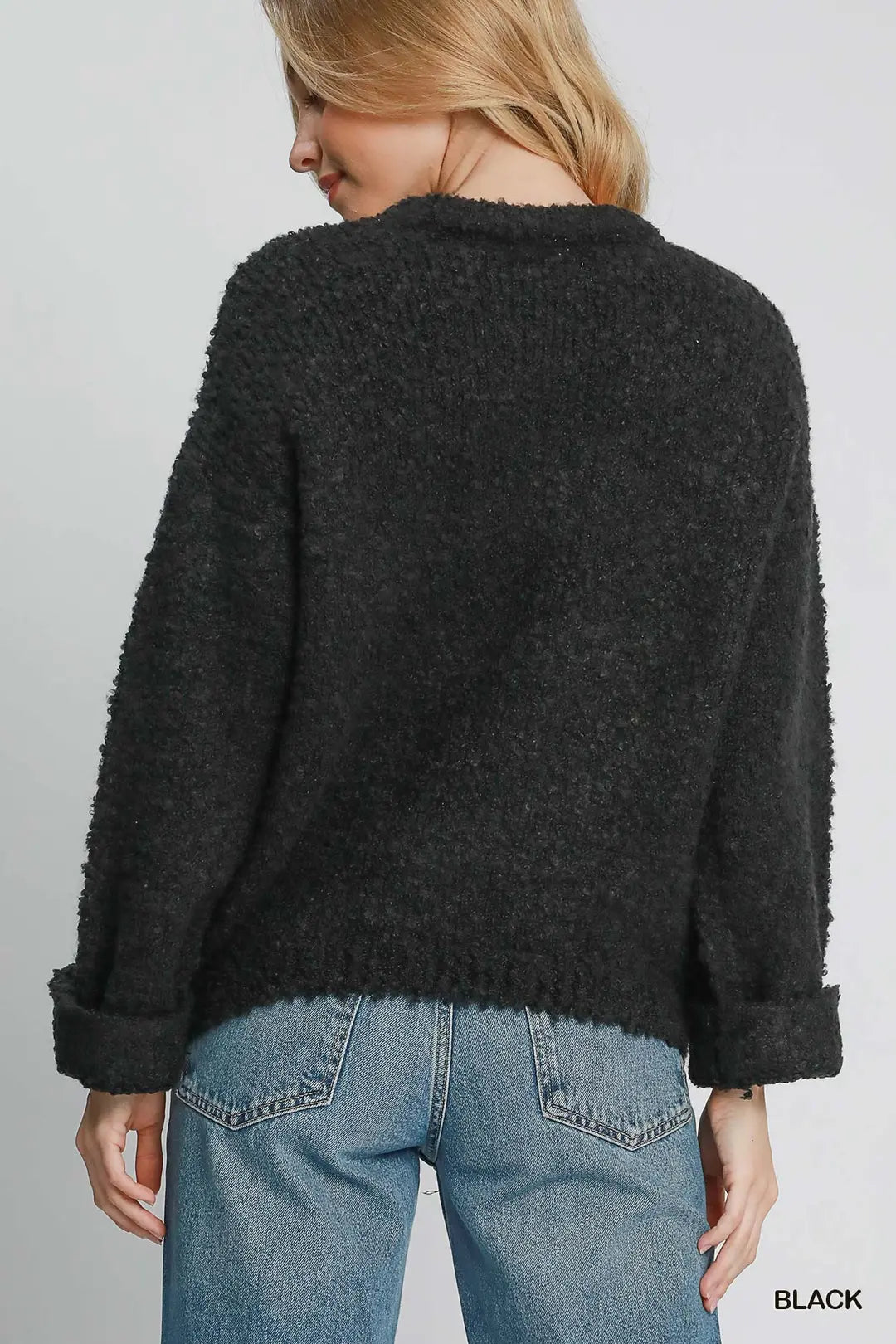 Stay warm and stylish with the Boucle Pullover Knit, featuring soft knit material and a flattering round neck design. Made from a comfortable blend of acrylic, wool, and polyester, it...