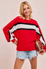 Stay comfortable and spirited with this Gameday Theme French Terry Color Block Top. Crafted from a soft blend of 58% cotton and 42% polyester, it offers cozy warmth and durability....